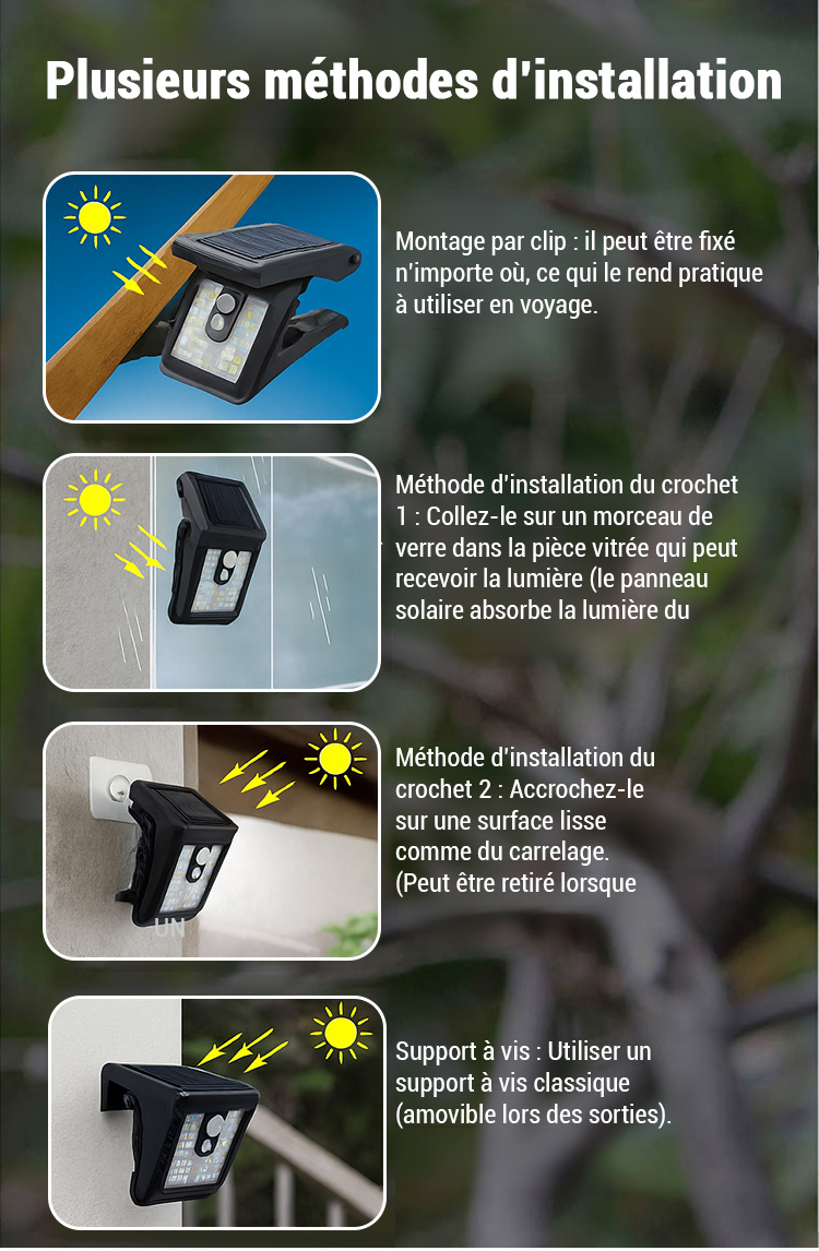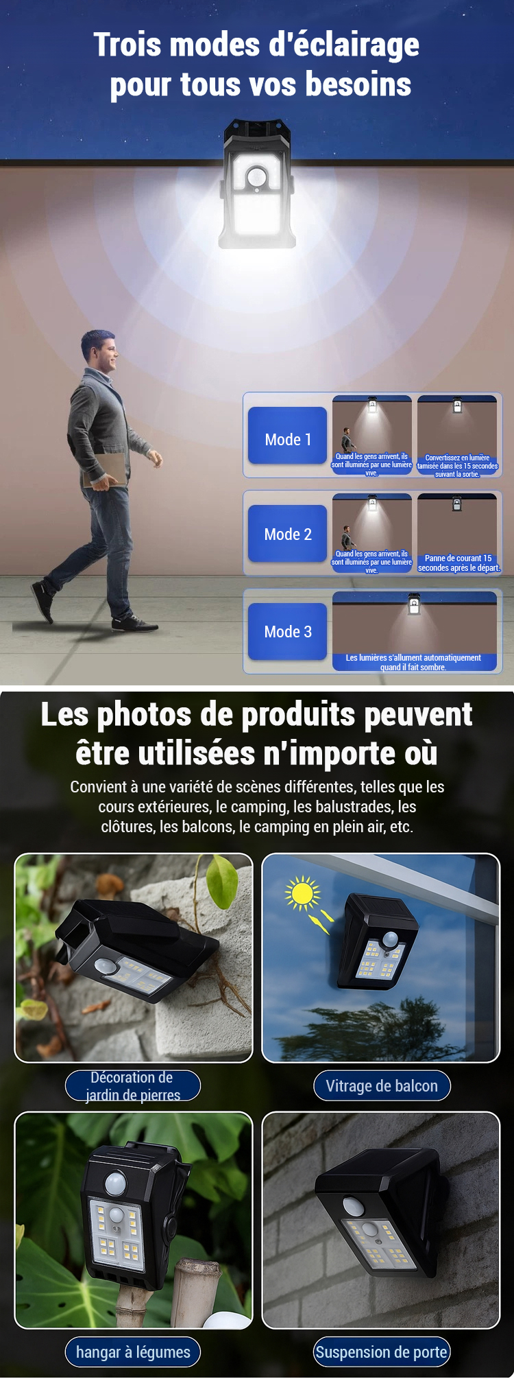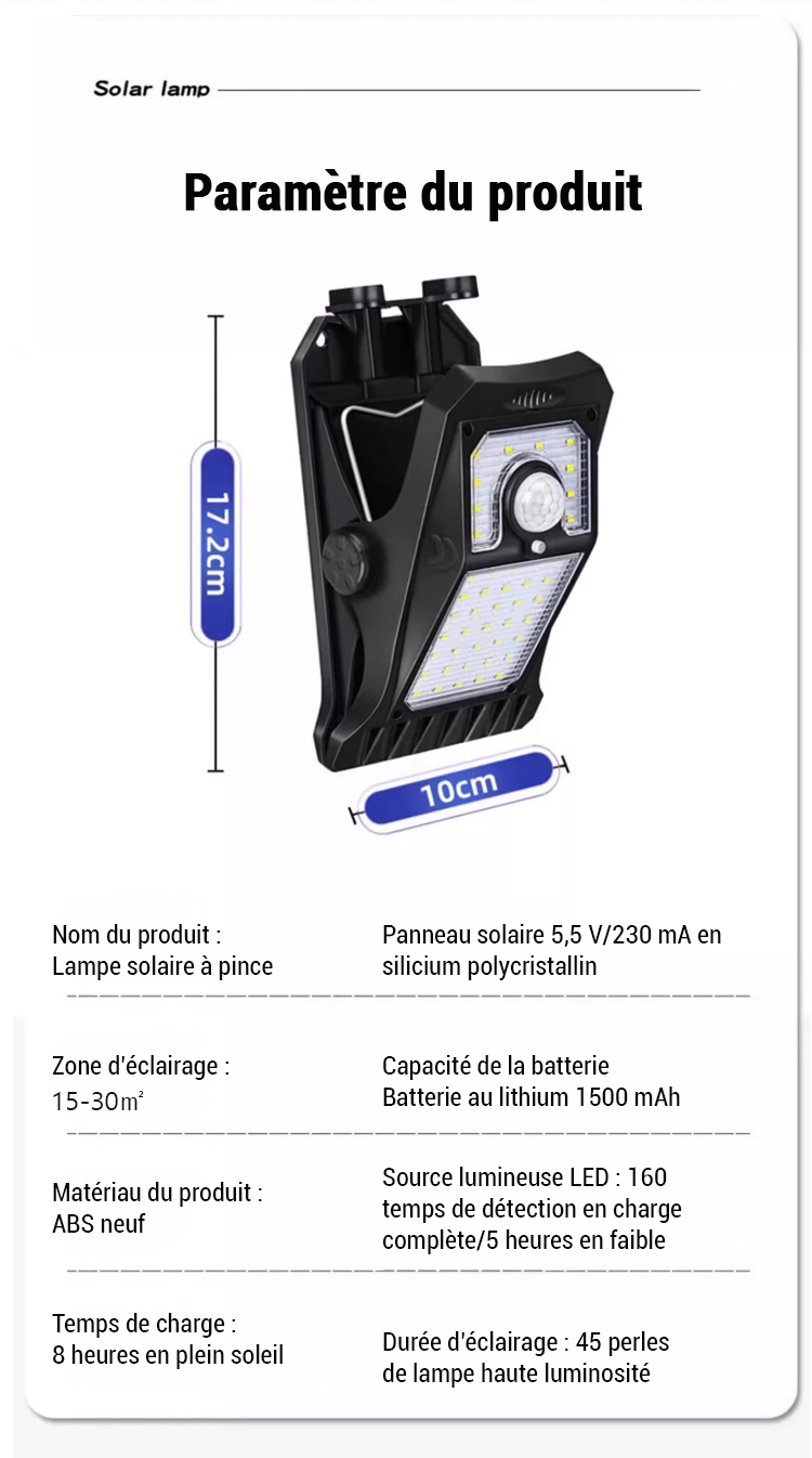 【Prix direct usine】Lampe solaire à capteur avec clip