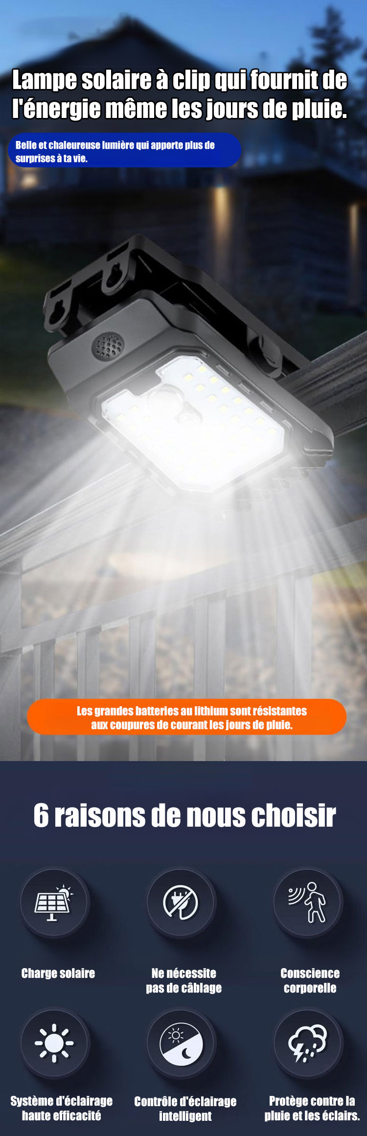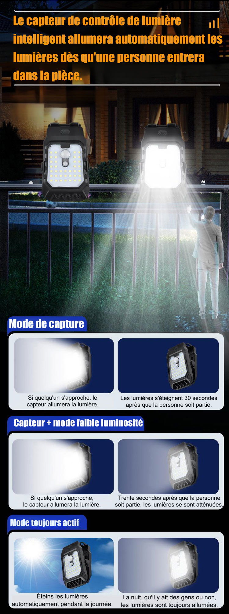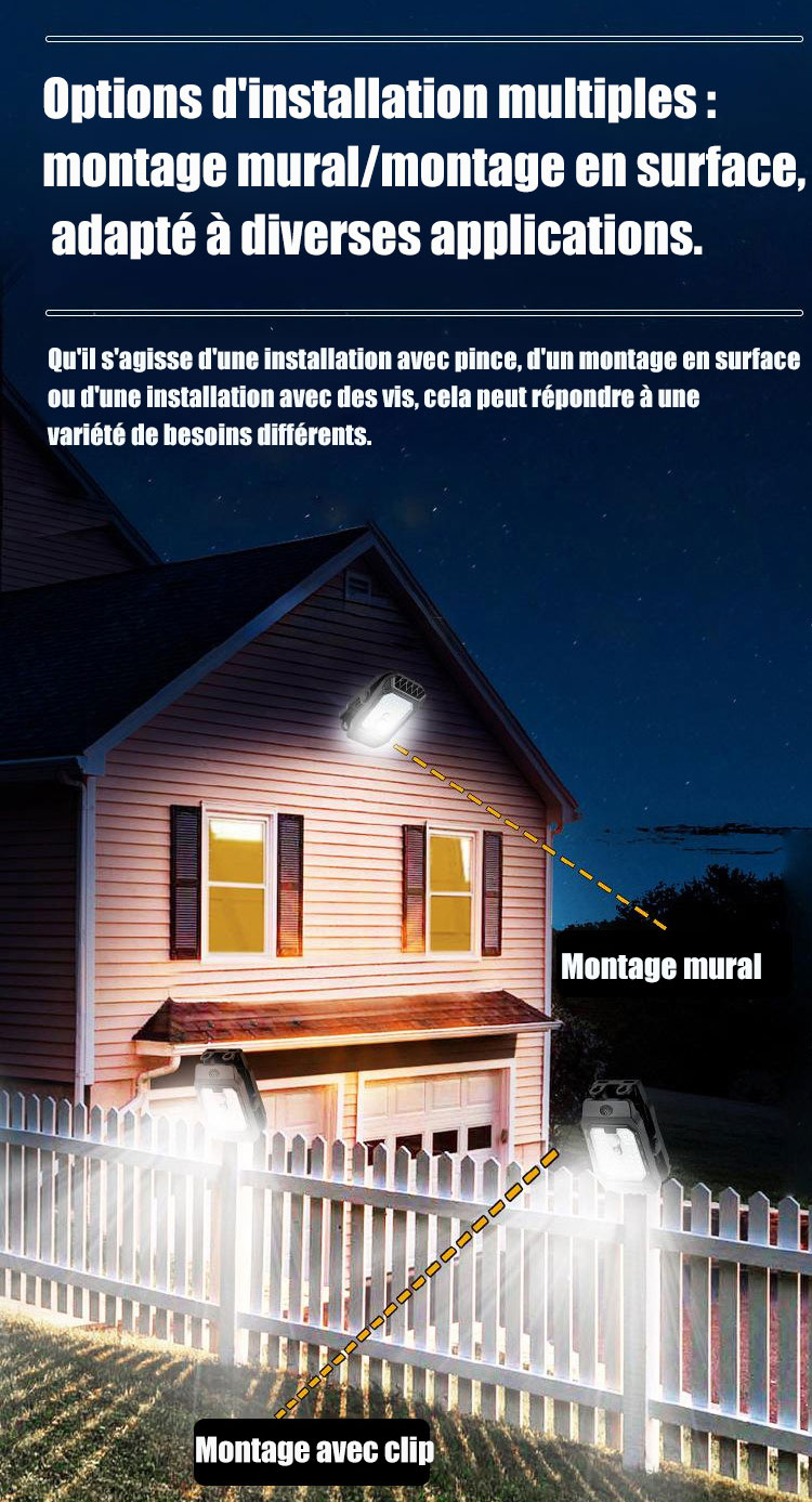 Lampe de clôture solaire avec capteur, Peut être placé n'importe où, illumine instantanément votre espace.