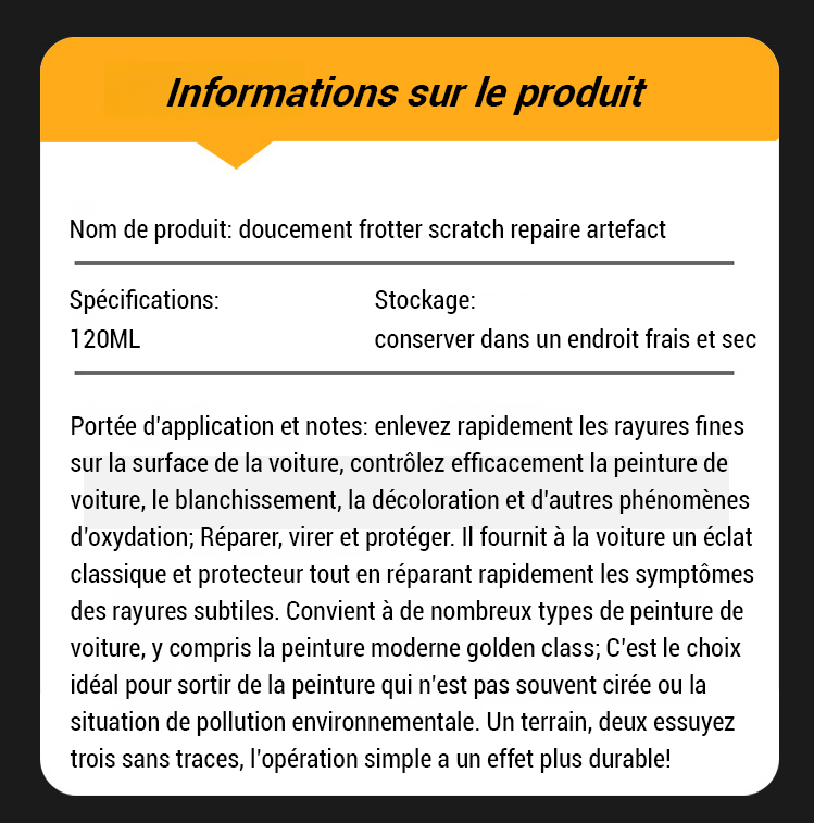 Cirage pour voiture pour brillance, restauration et réparation des rayures.
