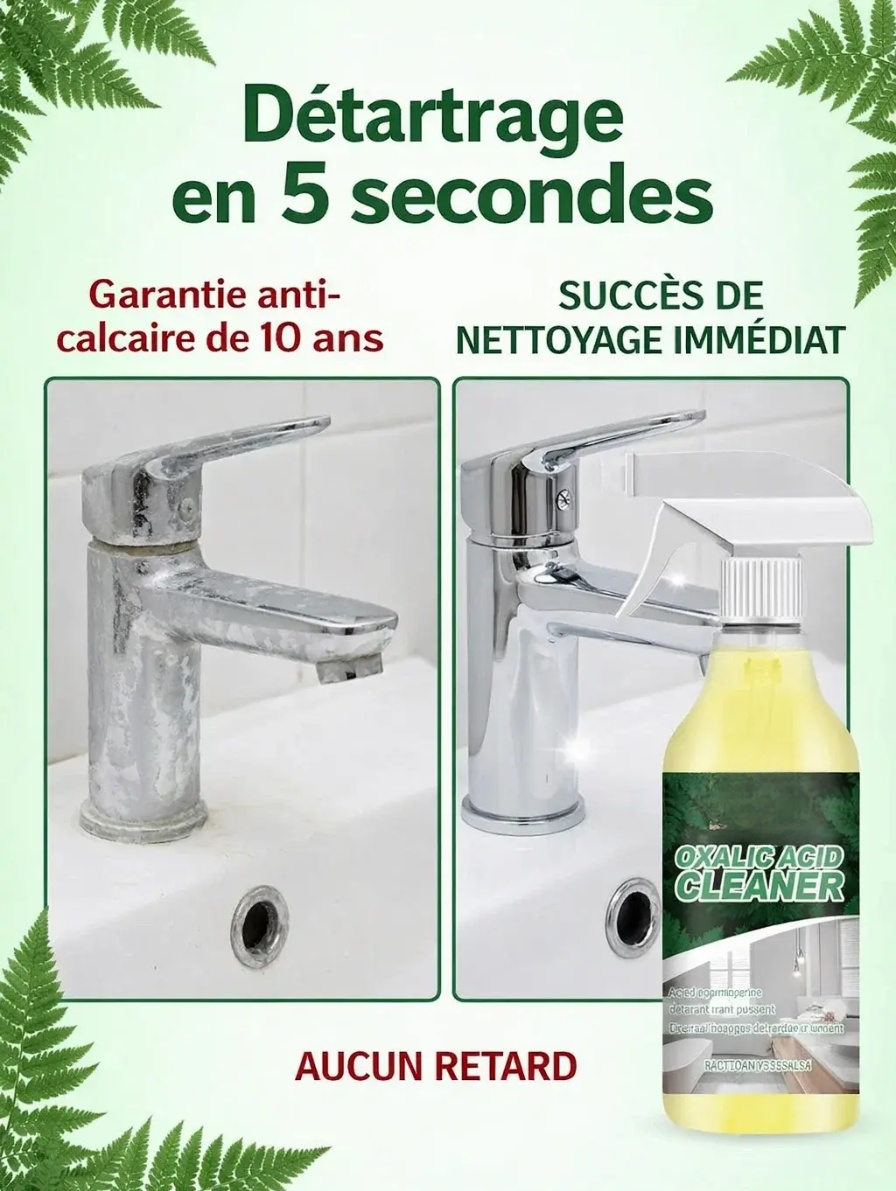 🏠Offre du jour: 1+1 GRATUIT. Élimine le calcaire tenace en seulement 5 secondes. Son pouvoir nettoyant est dix fois supérieur à celui des détergents classiques. 🌱Formule écologique et sans toxines, pour une maison parfaitement sûre.